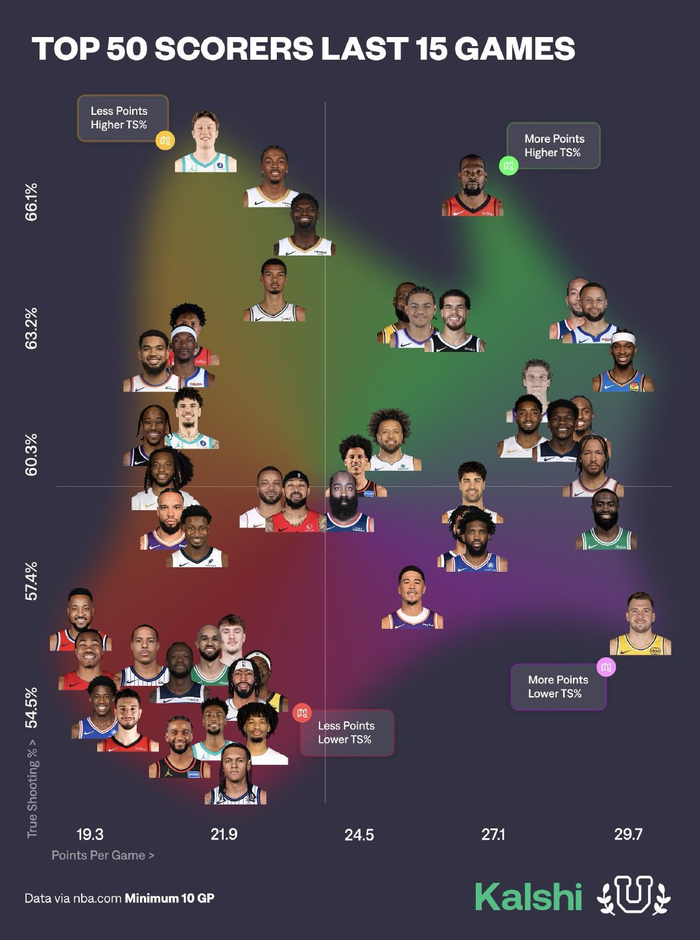 过去15场比赛得分榜前50球员